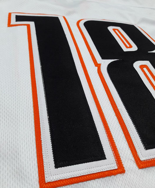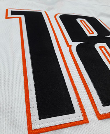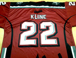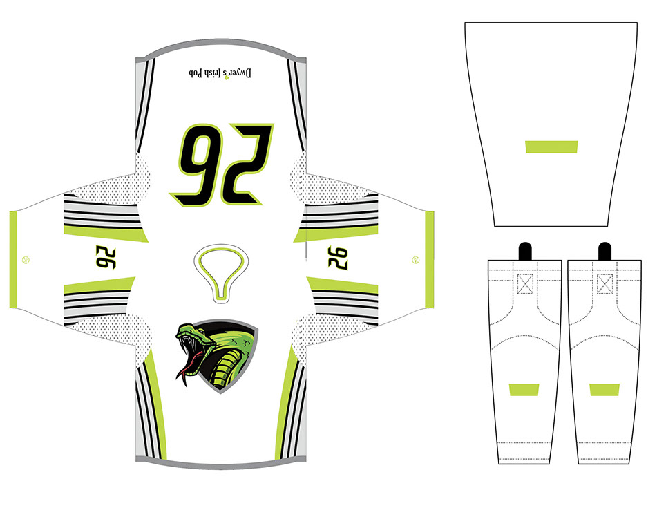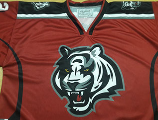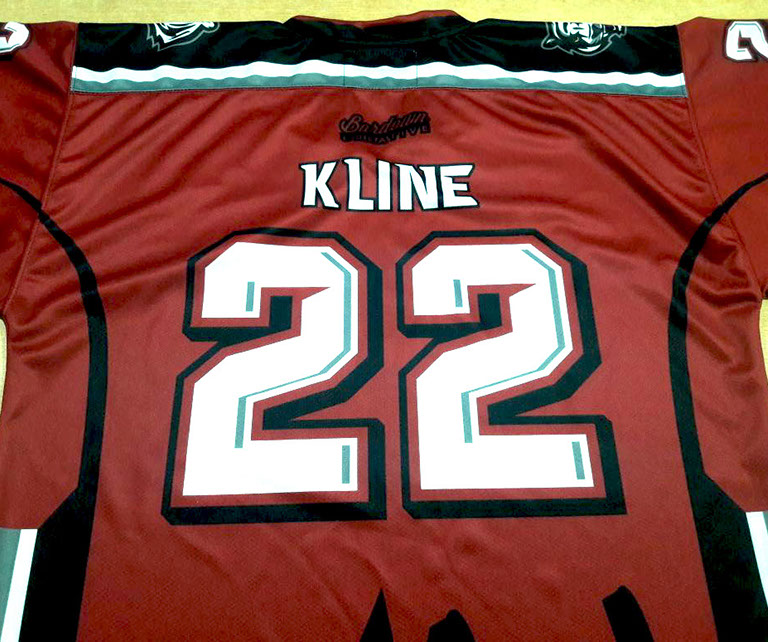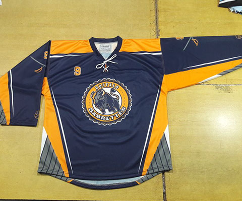 Sublimation style jersey. All logos, names, numbers, and lines were made through the sublimation process.