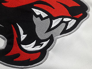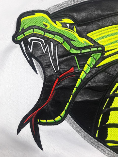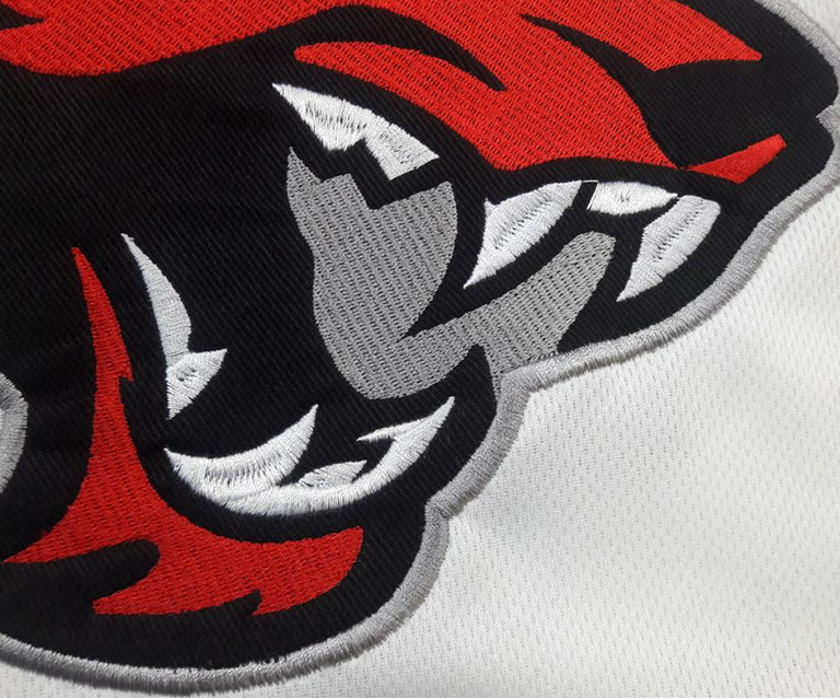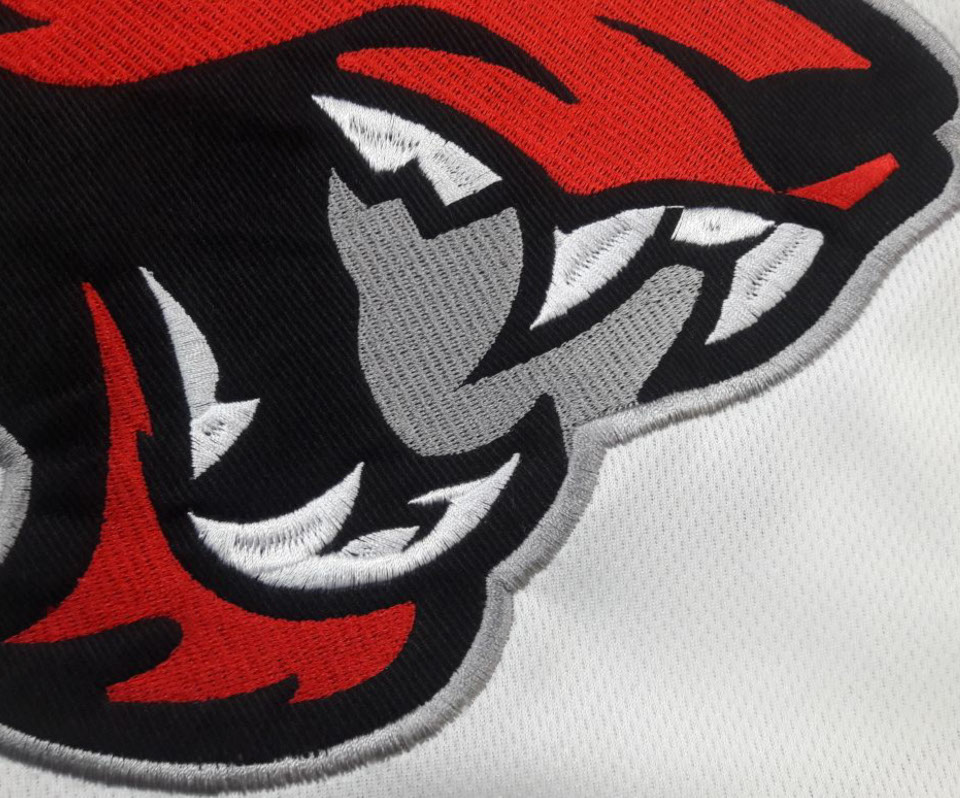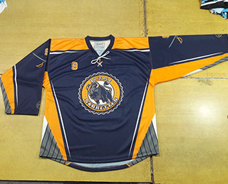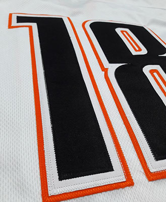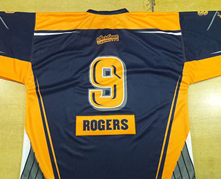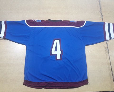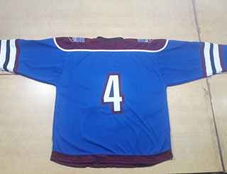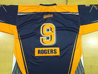 Cut and sew style jersey. Embroidered crest, embroidered nameplates, shoulder patch and stitched numbers.