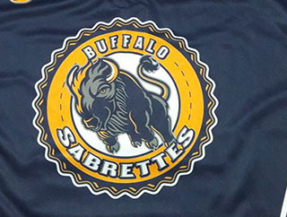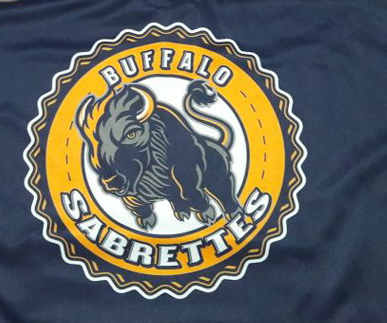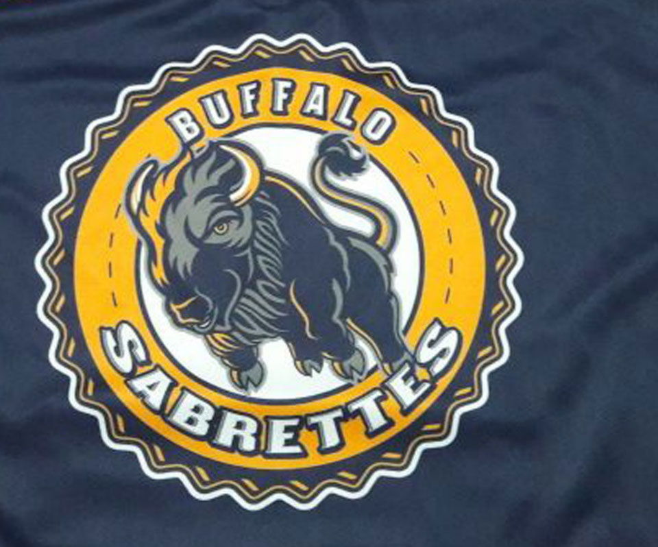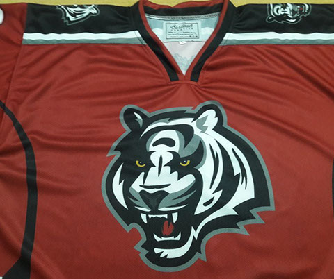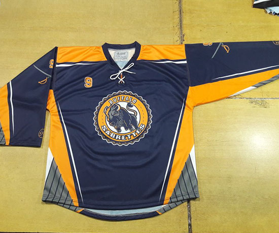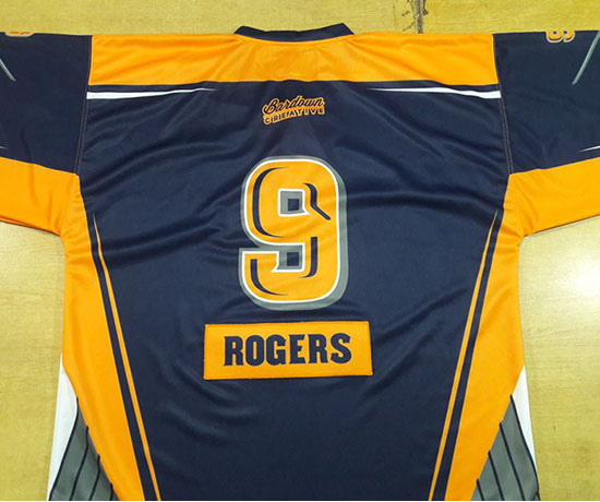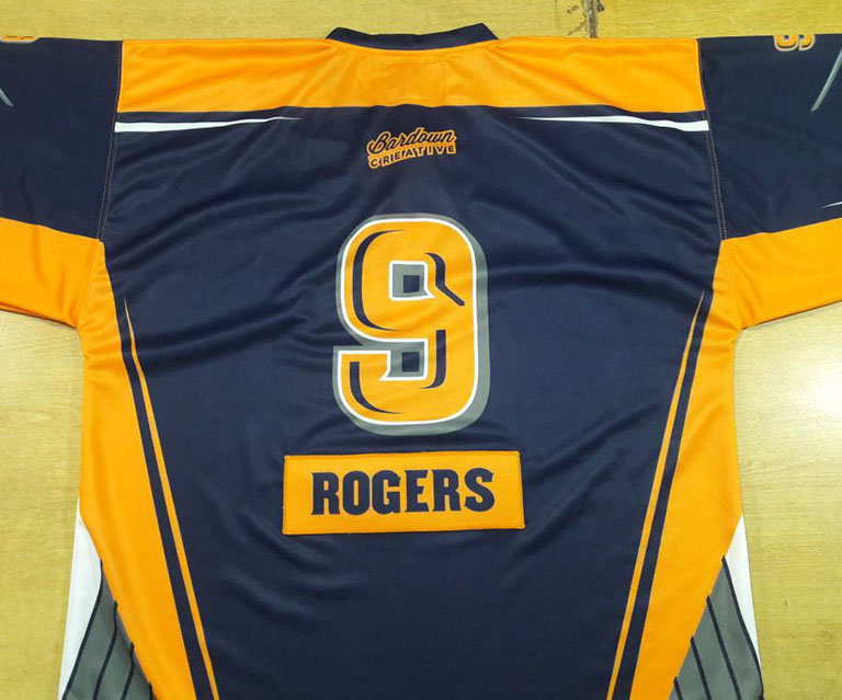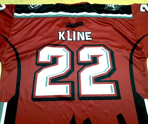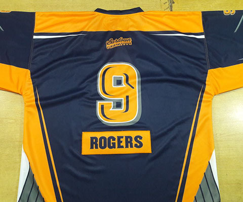 Sublimation style jersey. All logos, names, numbers, and lines were made through the sublimation process.